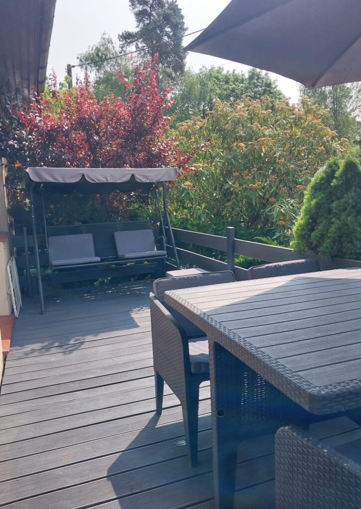 Dwupokojowy apartament z niezależnym wejściem w budynku głównym (36 m2) złożony z sypialni, salonu, aneksu kuchennego, łazienki i tarasu. Przeznaczony dla 2-5 os.