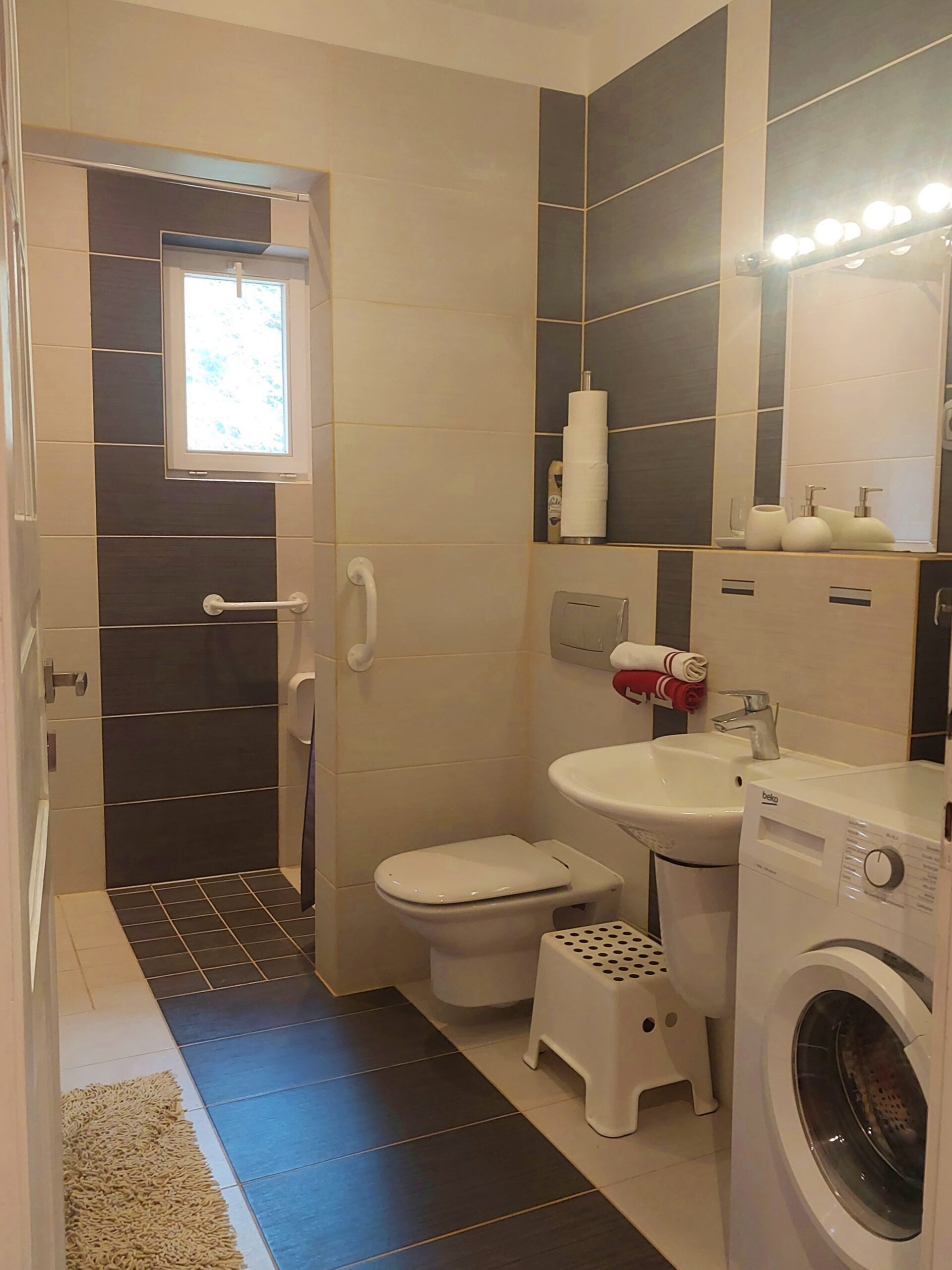 Obszerny apartament (75 m2) w budynku głównym z niezależnym wejściem, złożony z dwóch sypialni, kuchni ze stołem jadalnym, łazienki i słonecznego tarasu, na który prowadzą osobne wyjścia z każdej sypialni. Przeznaczony dla 2-8 os.